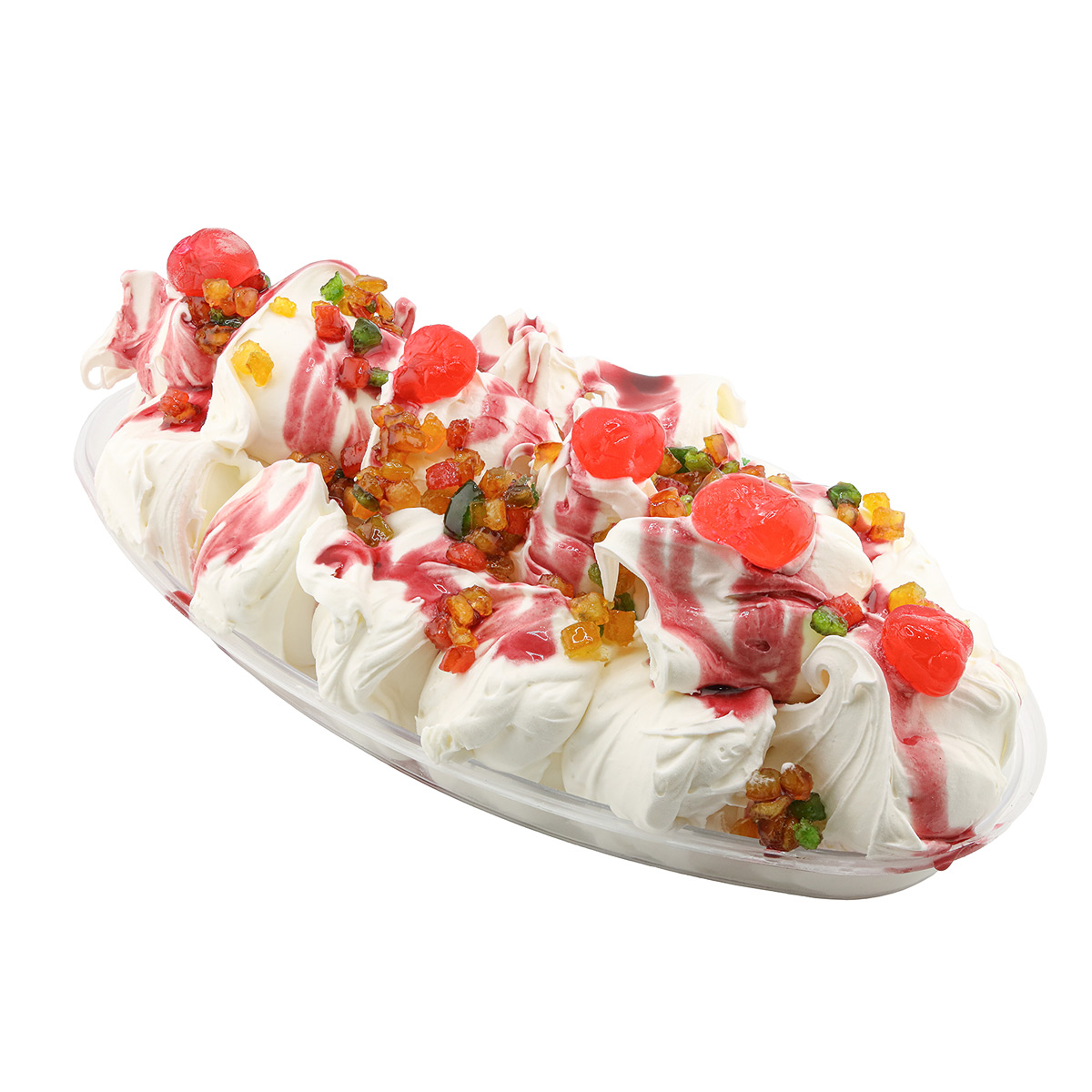 Μία εντυπωσιακή σύνθεση από αφράτο παγωτό του ζαχαροπλαστείου μας, στολισμένη με λαχταρισμένες γαρνιτούρες και υλικά. Ιδανική επιλογή για τραπέζια, επισκέψεις και οικογενειακές στιγμές· σερβίρεται απευθείας στο τραπέζι.