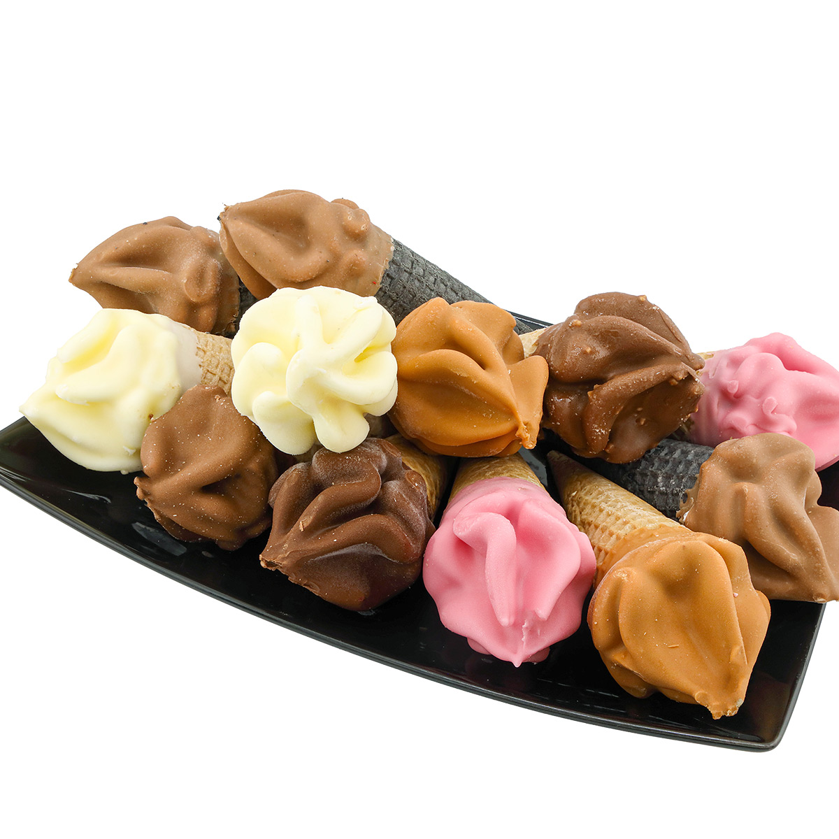 Μικρά, λαχταριστά χωνάκια παγωτού σε πρακτικό μέγεθος… ιδανικά για μια γλυκιά μπουκιά κάθε στιγμή! Κρεμώδες παγωτό σε αγαπημένες γεύσεις όπως σοκολάτα, βανίλια, φράουλα και cookies, σε τραγανό μπισκοτένιο χωνάκι και επικάλυψη σοκολάτας. Μια παιχνιδιάρικη και δροσερή λιχουδιά που λατρεύουν μικροί και μεγάλοι!