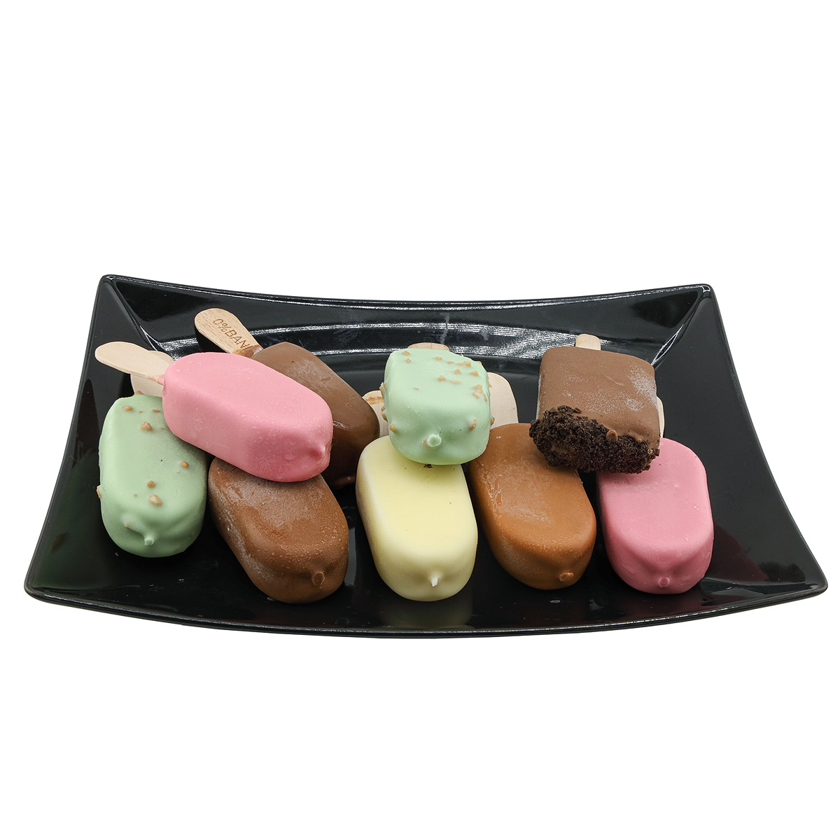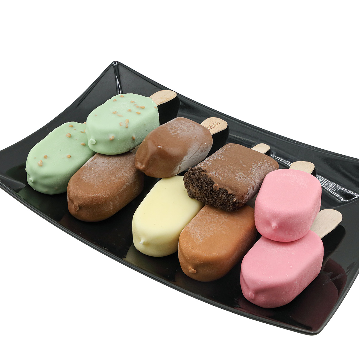 Μικρές, παγωμένες απολαύσεις σε ξυλάκι, ιδανικές για κάθε στιγμή της ημέρας. Κρεμώδες παγωτό σε υπέροχες γεύσεις όπως σοκολάτα, βανίλια, cookies, φράουλα και φυστίκι, βουτηγμένο σε τραγανή επικάλυψη σοκολάτας. Η τέλεια μπουκιά για μικρούς και μεγάλους, με γεύση καλοκαιριού όλο τον χρόνο!
